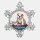 Bulldog Puppy 1st Christmas Red Ribbon Dog Photo Snowflake Pewter Christmas Ornament