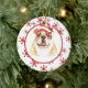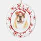 Bulldog Santa Hat Red Snowflake Christmas Ceramic Ornament