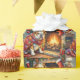 Bulldog Sitting by Fireplace with Christmas Lights Wrapping Paper