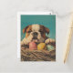 Celebrate Easter with the charming and iconic Bulldog in this vintage-style postcard. Featuring the loveable dog surrounded by colourful Easter eggs, blooming spring flowers, and festive seasonal accents, this design is perfect for Bulldog enthusiasts, collectors, and fans of nostalgic holiday art. A delightful keepsake to share Easter joy.