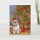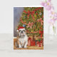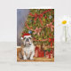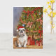 Bulldog Watercolor Under Christmas Tree Card