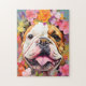 A Colourful spring time design with a Bulldog wearing a flower wreath