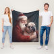 Bulldog With Santa Claus Festive Christmas Fleece Blanket