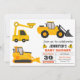 Amaze your guests with this cool construction theme baby shower invite featuring cute bulldozers and cute construction elements with modern typography on a white background. Simply add your event details on this easy-to-use template to make it a one-of-a-kind invitation. Flip the card over to reveal a vibrant yellow and black stripes pattern on the back of the card.