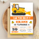 Bulldozer Construction Kids Birthday Party Invitation