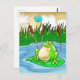 Postcard depicting cartoon bull frog eyeing a dragonfly.