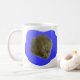 A mug that features a photo of a young African Bullfrog sitting in a digitally created blue lake on each side. This design is also available on several different styles of mug including travel mugs.