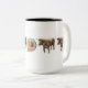 Sip your morning coffee or tea out of this whimsical mug featuring the Stampede ox "Bull's Eye" by artist James Kelewae.
