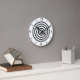 Round Wall Clock wall art decor and decorative home furnishing decor accessory printed with Bulls Eye Circle Rings Black And White Time Piece Modern Contemporary Indie Abstract Art on a changeable customisable background colour of your choice original artwork design illustration and select products collection by TheFabricSeal print on demand shop at Zazzle.com #ZazzleMade https://www.zazzle.com/store/thefabricseal TheFabricSeal©️Original.
