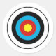 Bullseye target design on black, white, blue, red and yellow.