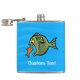 The flask itself is fine. It’s a cheap flask, obviously bought in bulk, however am prepared to overlook that. Given that it is a personalized item, I would have liked to have seen gift boxing instead of the generic packaging. Terrible printing, and/or quality. It’s a cheap, tacky vinyl. It is not cut straight and is also applied in a way that it is overhanging the bottom, causing the glue to catch on items and it will eventually roll and tear, damaging the wrap.
