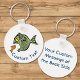 Angry fish bullying a little one cartoon illustration. Custom background colour. Custom text on both sides.