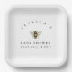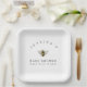 Cute yellow and white floral bee-themed baby shower paper plates. Perfect for bumble bee showers and yellow baby showers in spring or summer. Unique hand-drawn bee is centre stage. Mum to bee's name with "what will it bee" below the baby shower text. Easily customise the text to whatever wording you like.