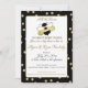All the Buzz is about baby to bee with our unique gold and black polka dot bumble bee theme baby shower invitation.
