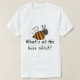 Cute orange and black striped bumble bee design and line drawn text that reads "What's all the buzz about?" on cute bumble bee T-shirts, cards, mugs, stickers, and more.