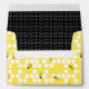 Sweet bumble bees buzzing over honeycomb pattern with black and white polka dot contrast.