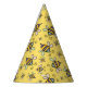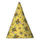Cute repeat pattern of lots of bumble bees on a yellow background.
