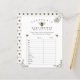 Cute yellow and white floral bee-themed baby shower game for guess who knows mummy best. Perfect for bumble bee showers and yellow baby showers in spring or summer. Unique hand-drawn flowers with buzzy yellow and black bees. Mum to bee's name is front and centre with "what will it bee?" below the baby shower text. Guests try to guess which feature mummy hopes the baby will get. Easily edit the text on this bumble bee baby shower game.