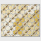 Cute bumble bees hand drawn illustration with gold and yellow honeycomb background.