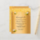 Elegant, fun, summer baby shower invitation postcard. A faux gold metallic, foil looking background and faux gold glitter drips. Decorated with happy smiling bumblebees. With the text: Mummy to Bee and the name of the mum to be written with a modern hand lettered style script. Black letters. Gender neutral.