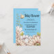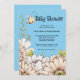 A cute fun design with a sweet bumblebee at the top and large flowers in blush and white bordering the left side and bottom edges on a background of baby blue which is also on the back. The main header Baby Shower is in a fixed modern style and the rest of the text you can easily personalise to your own details. You can also change the brown text colours if you wish via the Click to Customise Further option as well as the background colours on either side via the customise further option.