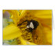 Original closeup photograph of a bumbleebee on a sunflower. Large black and white bee is resting on the bright flower..