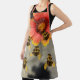 A Gardener's Dream! Bumblebees appear to be catch in flight and lured to the bright orange Gaillardia blossom on this all-over print apron. The big yellow and black bumblebees and vibrant orange flower make this beautiful apron colourful and fun.