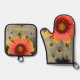 Bumblebees and Orange Gaillardia Sunflower Floral Oven Mitt & Pot Holder Set