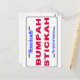 An example of "BostonSpeak". This is the Boston version of Bumper Sticker, the "r"s are not pronounced. It is labelled on a sample of the Massachussetts license plate.