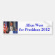 Bumper sticker, Allen West for President 2012 Bumper Sticker