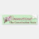 Evergreen leaves and captivating star-shaped blooms, accentuated with distinctive burgundy blotches; the Mountain Laurel is one of the most beautiful blooming shrubs native to America. Also known as ivybush, sheep laurel, calico bush, lambkill (because the plants are quite toxic, especially to small animals), clamoun and spoonwood (because Native Americans made spoons from the wood). Laurel flowers represent ambition, success and fame. Though they look very similar, there is a BIG difference between Mountain Laurel and Bay Laurel (used in cooking and to make the famous, laudible wreaths). Unlike Bay Laurel, virtually all parts of the Mountain Laurel are poisonous to both humans and animals. Also the State Flower of Pennsylvania, Mountain Laurel offers a stunning floral display in May and June with blooms in pinks, whites and reds. But this design is not just a tribute to this stunning flower, it also pays homage to our 5th state, Connecticut. Out of 50 states, Connecticut is the 48th largest . . . or 3rd smallest in the union. For a state that, TECHNICALLY, isn't on the ocean (Long Island Bay is actually an estuary), Connecticut has a rich maritime history and an amazing maritime museum in Mystic. Though the official nickname is "The Constitution State", Connecticut is also knows as "The Nutmeg State", "The Provisions State", and "The Land of Steady Habits". Finance and insurance are Connecticut's largest industries; maybe not that surprising as it is also the birthplace of Charles Dow, the founder of the The Wall Street Journal and Dow Jones AND J. P. Morgan, financier and philanthropist. Of course, it's also the birthplace of, among other notables, Former President, George W. Bush, Katharine Hepburn, Meryl Streep and Noah Webster -- as in Webster's Dictionary. This delightful design, celebrating the 5th addition to the United States, offers an outline of the state of Connecticut, filled with their state flower, the beautiful Mountain Laurel. This is layered with the coordinating pink "Connecticut" and anchored with a deep burgundy "The Constitution State". This lovely bumper sticker is appropriate for sale in Connecticut souvenir shops and also a wonderful reminder of your memorable Connecticut vacation.