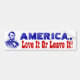 A Red, White, & Blue "Wave" Bumper Sticker with a slogan popularised in the 1960's era.. "AMERICA, Love It Or Leave It!" By using the CUSTOMIZE IT option, you can change the font style, font size, etc.! Thanks For Stopping By!