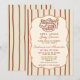 Styled in rich brown, cream, and terracotta tones, this design features soft vertical stripes, a gently scalloped frame, and a charming hand-drawn bread basket illustration that brings the beloved bun in the oven theme to life. The earthy color palette and cozy bakery aesthetic create a comforting, home-inspired feel—ideal for fall baby showers, neutral celebrations, or intimate open house events.