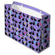 This gift bag is purple with a bunch of sitting black silhouette bunny rabbits wearing flowers and a scattering of different coloured flower petals for Easter or spring time Birthdays.