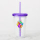 This acrylic drink tumbler with straw and lid has a bunch of bright vibrant balloons in multiple colours tied together with matching hanging streamers on the front and back.