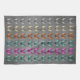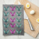 This kitchen hand towel is dark grey with a bunch of spooky bats in various colours of pink, white, yellow, orange, green and blue with wings spread in flight.