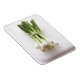 Bunch of spring onions on white chopping board magnet