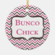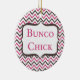 Here is a fun pink and grey graphic Bunco design that features a chevron background pattern. Text read Bunco Chick. Great gift for a birthday, hostess, holiday or a prize.