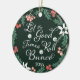 Wonderful Christmas Bunco ornament to celebrate the holidays! Pretty wreath of berries,flowers and leaves accent this "Let The Good Times Roll Bunco" dice game ornament. Green background. Perfect as a gift or for Bunco ornament gift exchange.
