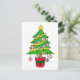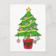A cute cartoon Christmas tree decorated with tinsel and several dice, set against a crisp white background.
