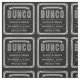 Have fun crafting or sewing a Bunco project with this black and white vintage typography Bunco design. Design features a decorative frame, ribbon and elements. Features the words:Bunco, Marvellous Friends, Wonderful Laughs and Precious Times. Great as a table cloth for your next Bunco night.