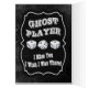 This is the perfect card to use when you have a missing player. Simply prop this Ghost Player card on the table to help players remember to roll the dice for their missing friend. Graphic design features a distressed and vintage look. Text is wavy and ghostly looking. Features three Bunco Dice. Text reads: Ghost Player, I Miss You, I Wish I Was There! Great for your next Bunco night! Put this Ghost Player card in with your other Bunco supplies.