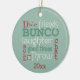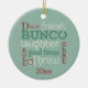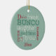 Have fun playing Bunco or Bunko with your friends. Fun holiday ornament for your Bunco ornament gift exchange. Green,white and red colour theme. Monogram with the year of your gift.