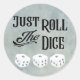 Do you play Bunco or Bunko? If so you know all you got to do is "Just Roll The Dice". Design includes three lucky bunco dice all set to score BUNCO'S!