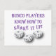 Here is a fun Bunco graphic design. Bunco Players Know How To Shake it Up! Add a little fun to your next Bunco event. Give a prize or a gift! Have fun rolling the dice!