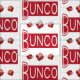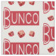 Retro style typography red Bunco text repeat pattern along with red Bunco dice. Perfect for players who enjoy crafting or sewing. Novelty style inspired by a Bunco player.