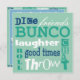 Here is a fun Bunco Subway graphic art design. Featured are various words associated with Bunco: dice, Bunco, friends, laughter, good times, roll and chat. This unique invitation features graphics on both sides. Invitation also includes Bunco dice.