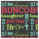 Fun and festive Bunco subway art typography novelty fabric. Background colour can be changed to fit your own colour design style. Text is done in blue, green and red. Bunco inspired graphic design features words associated with the game of Bunco. Dice, Friends, Bunco, Laughter, Roll, Good Times, and Throw. Make your own Bunco fabric accessories such as table cloth, napkins, tote bags and other fun crafting projects. Great for Bunco quilters!