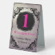 An elegant Bunco table card for your guests to appreciate. Help players move from table to table with this easy to ready and beautiful design. Elegant black border, large easy to read table number and instructions for staying put or moving on. Antique silver faux background adds a bit of decadence and style. . Modern text style. Look for table one, two and three.