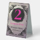 An elegant Bunco table card for your guests to appreciate. Help players move from table to table with this easy to ready and beautiful design. Elegant black border, large easy to read table number and instructions for staying put or moving on. Antique silver faux background adds a bit of decadence and style. . Modern text style. Look for table one, two and three.